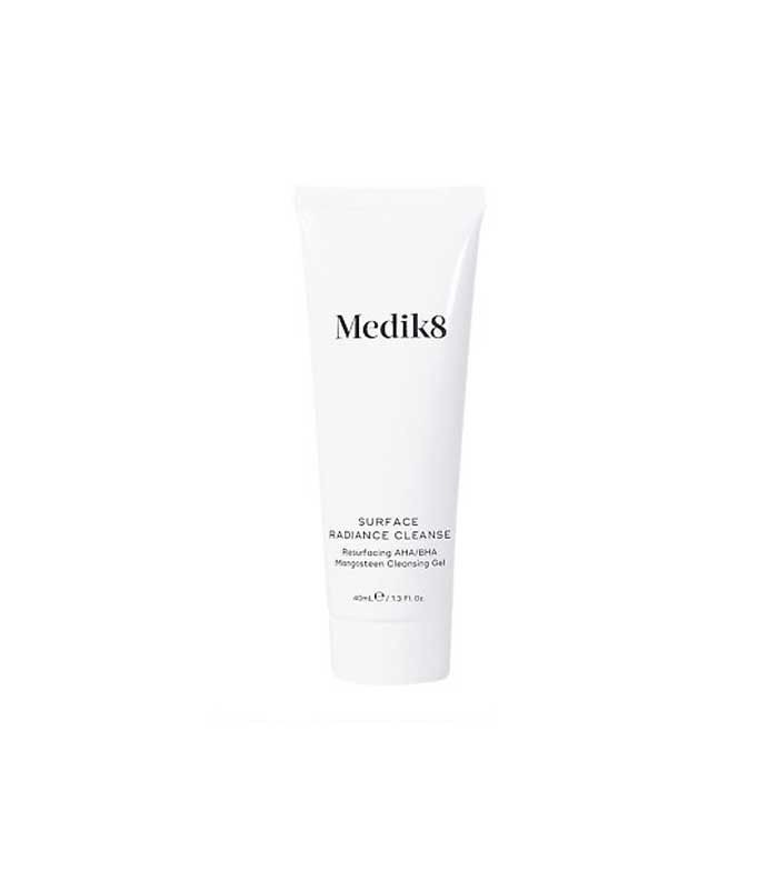 Gel limpiador facial con AHA/BHA Mangostán Surface Radiance de Medik8 renueva y purifica suavemente la piel para revelar un rostro suave y radiante.