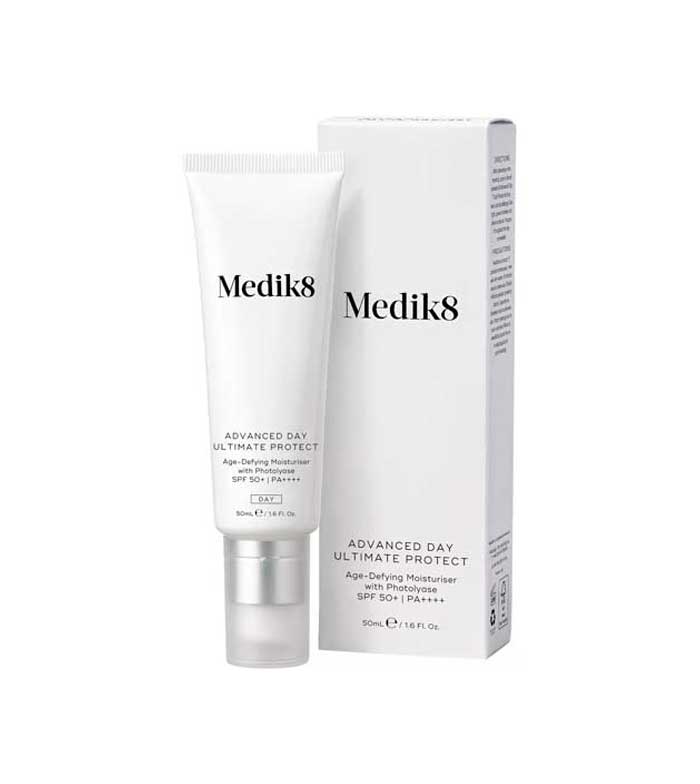 La crema de día de Medik8 Advanced Day Ultimate Protect es el protector solar SPF 50+ PA ++++ de mayor protección, con enzimas reparadoras de ADN de próxima generación y el escudo ambiental de 360 ° más avanzado hasta ahora.