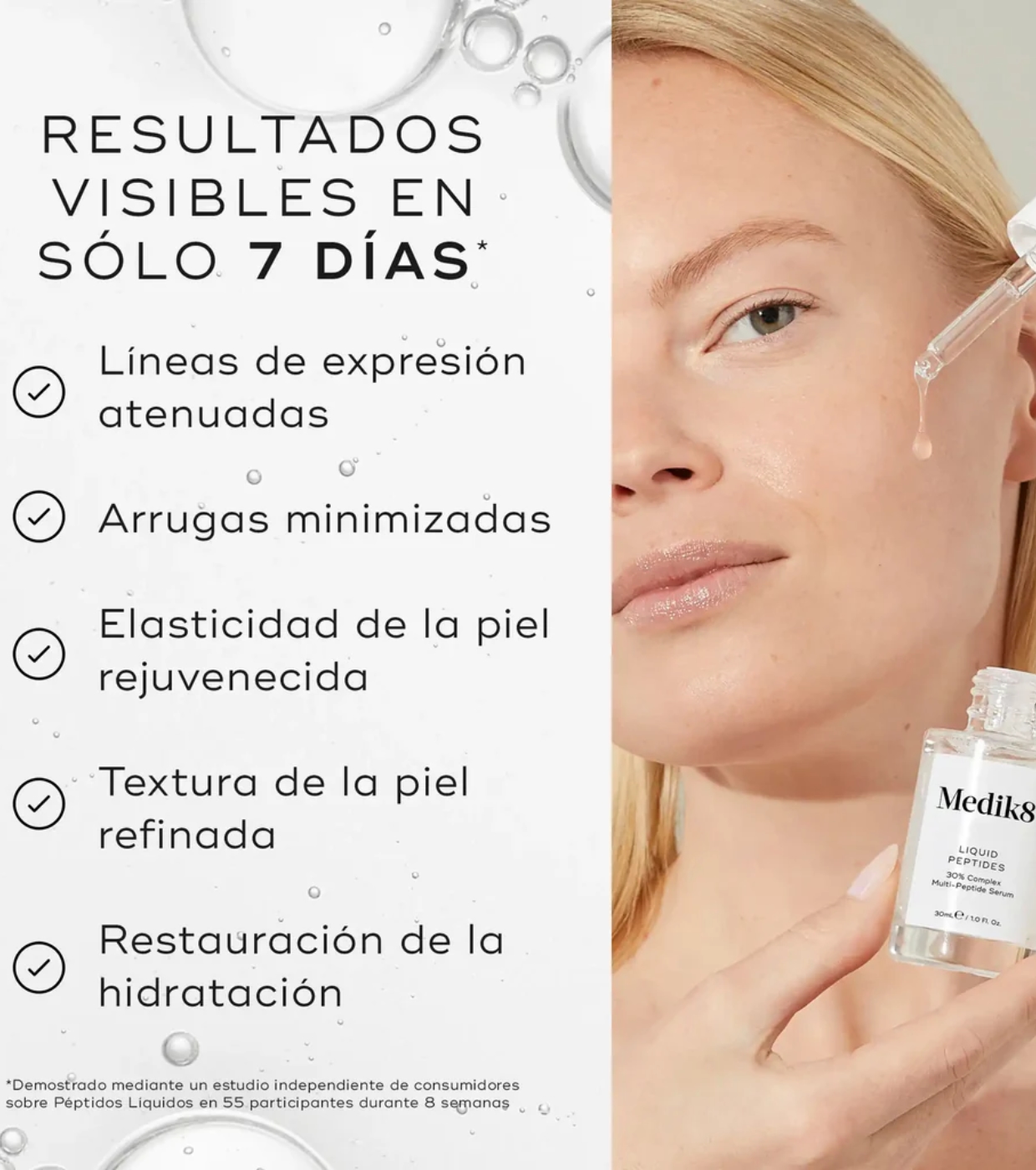Renueva y devuélvele vida a tu piel con el sérum multi-péptidos 30% complex Liquid Peptides de Medik8.