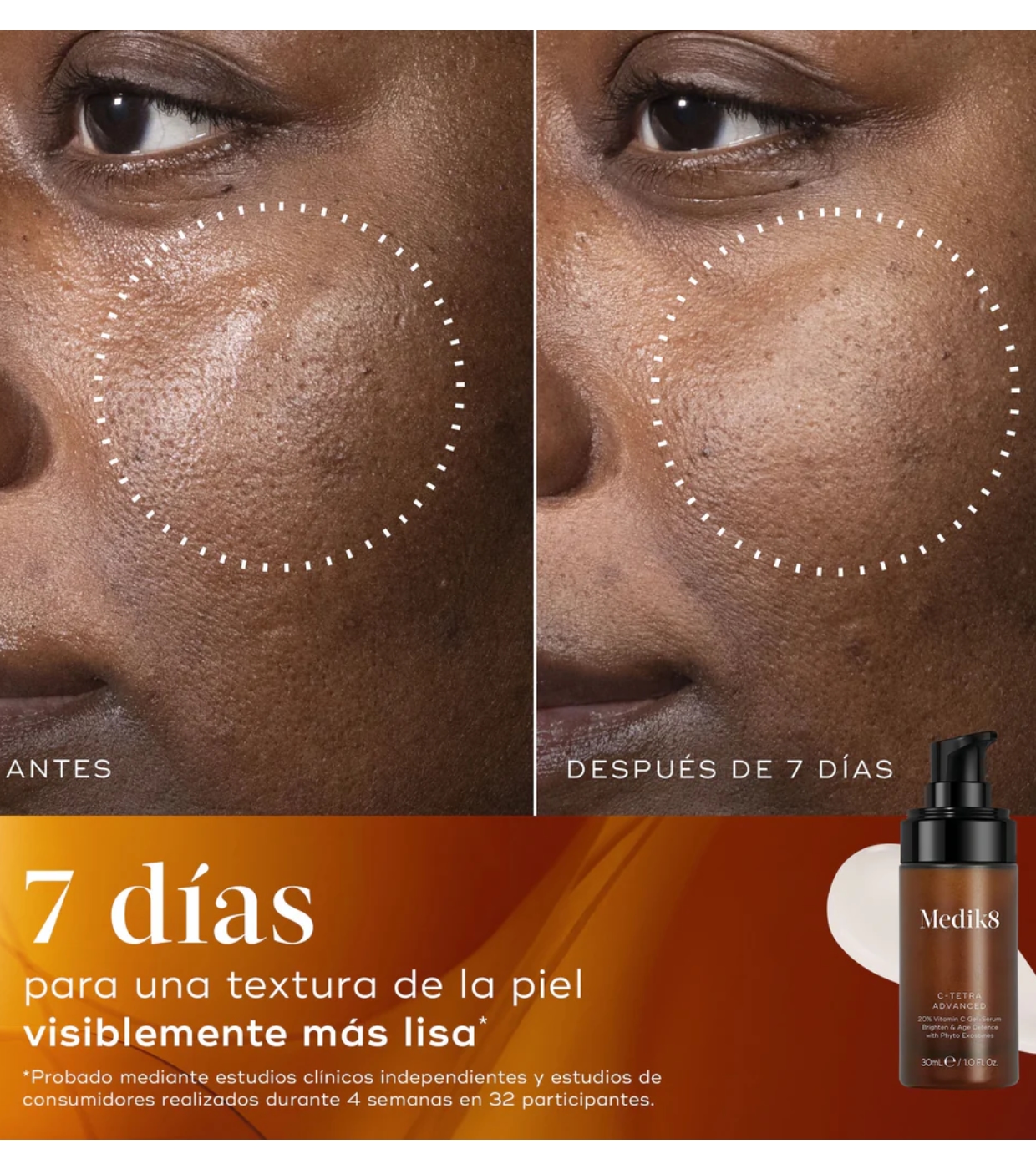 Potencia la luminosidad de tu piel y defiéndela del envejecimiento prematuro con el gel sérum antiedad e iluminador Vitamin C Advanced C-Tetra de Medik8.