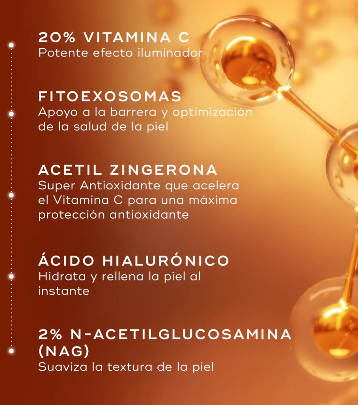 Un sérum clínicamente probado que combina un 20 % de vitamina C estabilizada con la ciencia de la barrera cutánea para ofrecer resultados visibles en solo 7 días.