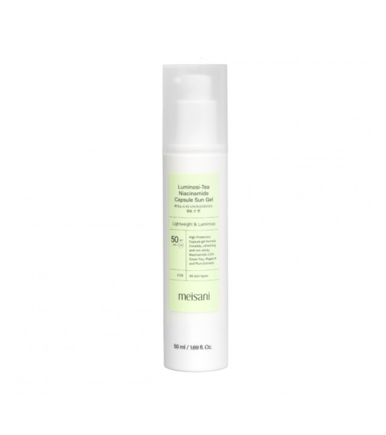 El Protector solar Luminosi-Tea Niacinamide Capsule Sun Gel SPF50 es un protector solar en gel ultraligero que ofrece alta protección de amplio espectro (UVA/UVB) y un acabado luminoso, hidratante y confortable.