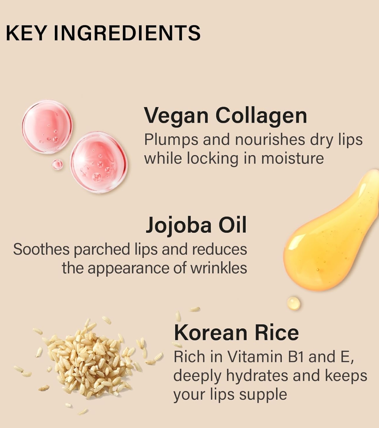 Enriquecido con arroz coreano, aceite de jojoba y el poder rejuvenecedor del colágeno vegano, este bálsamo mantiene tus labios suaves, radiantes y visiblemente más saludables.