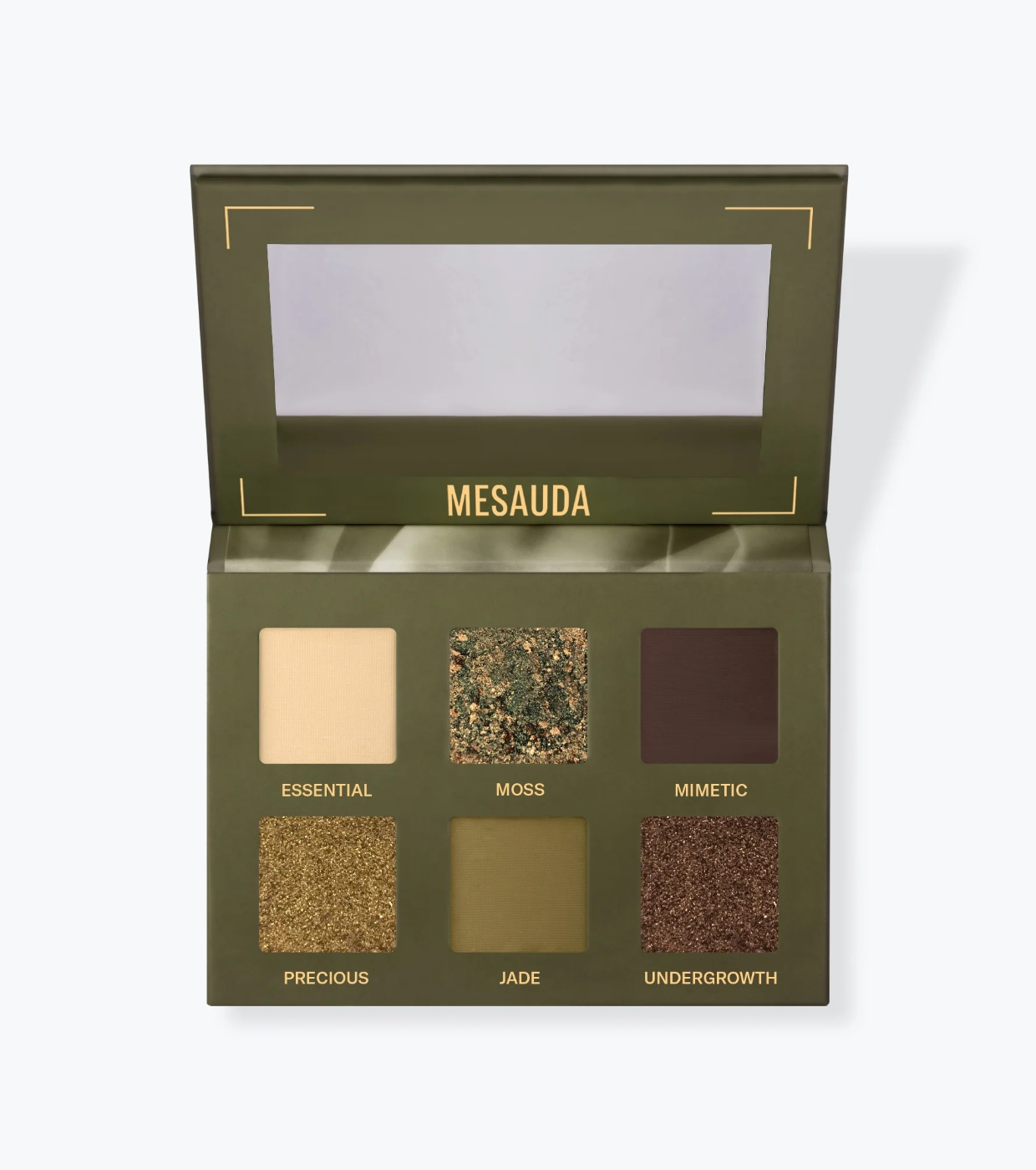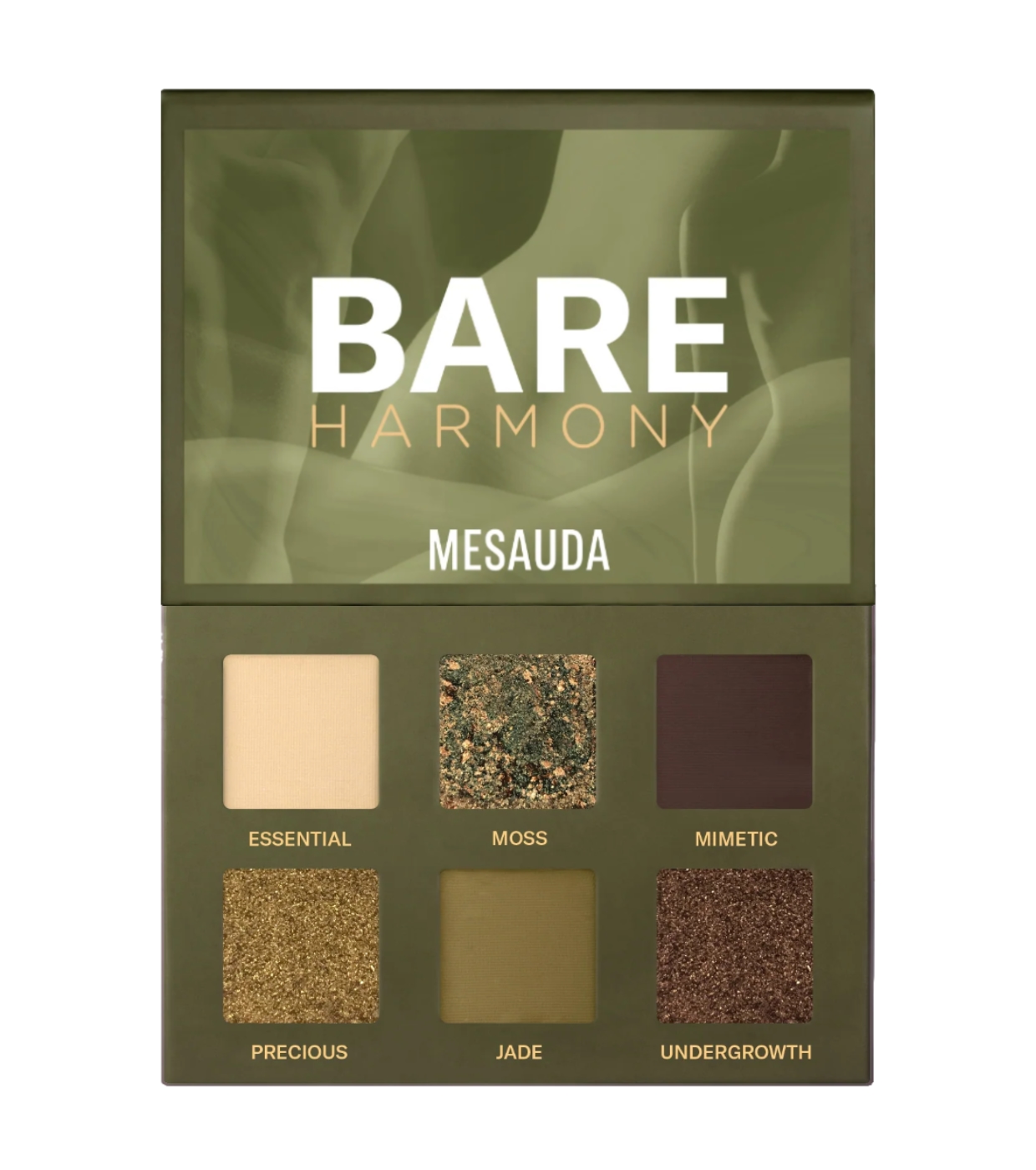 La paleta de sombras Bare Harmony 3.0 de Mesauda con tonos verdes intensos y envolventes, perfecta para crear looks únicos, sofisticados y misteriosos, capaces de realzar la mirada con un toque especial y elegante.