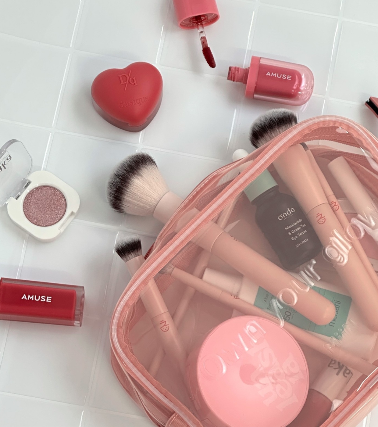 Te presentamos tu nueva obsesión beauty: el neceser Dewy Pouch de MiiN, un accesorio rosa y transparente ideal para llevar tus esenciales de cosmética coreana a todas partes.