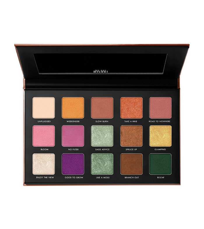 Esta paleta contiene 15 sombras de ojos en una mezcla de tonos con acabados mates y brillantes.