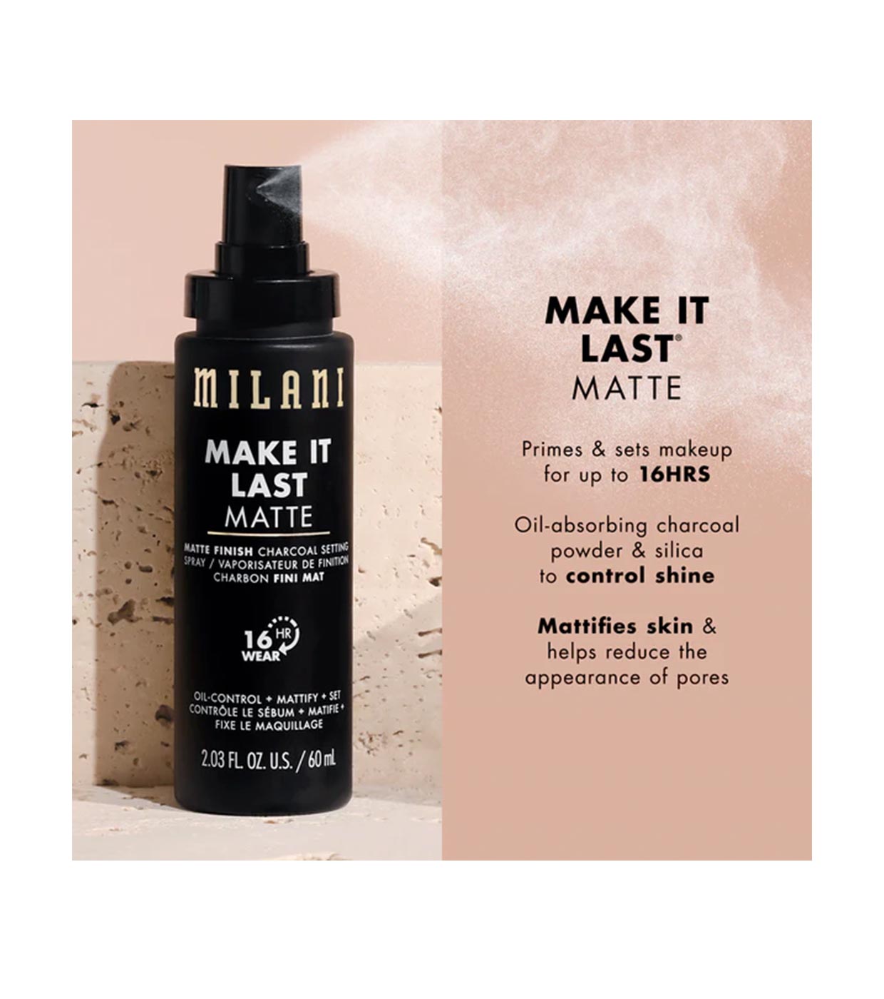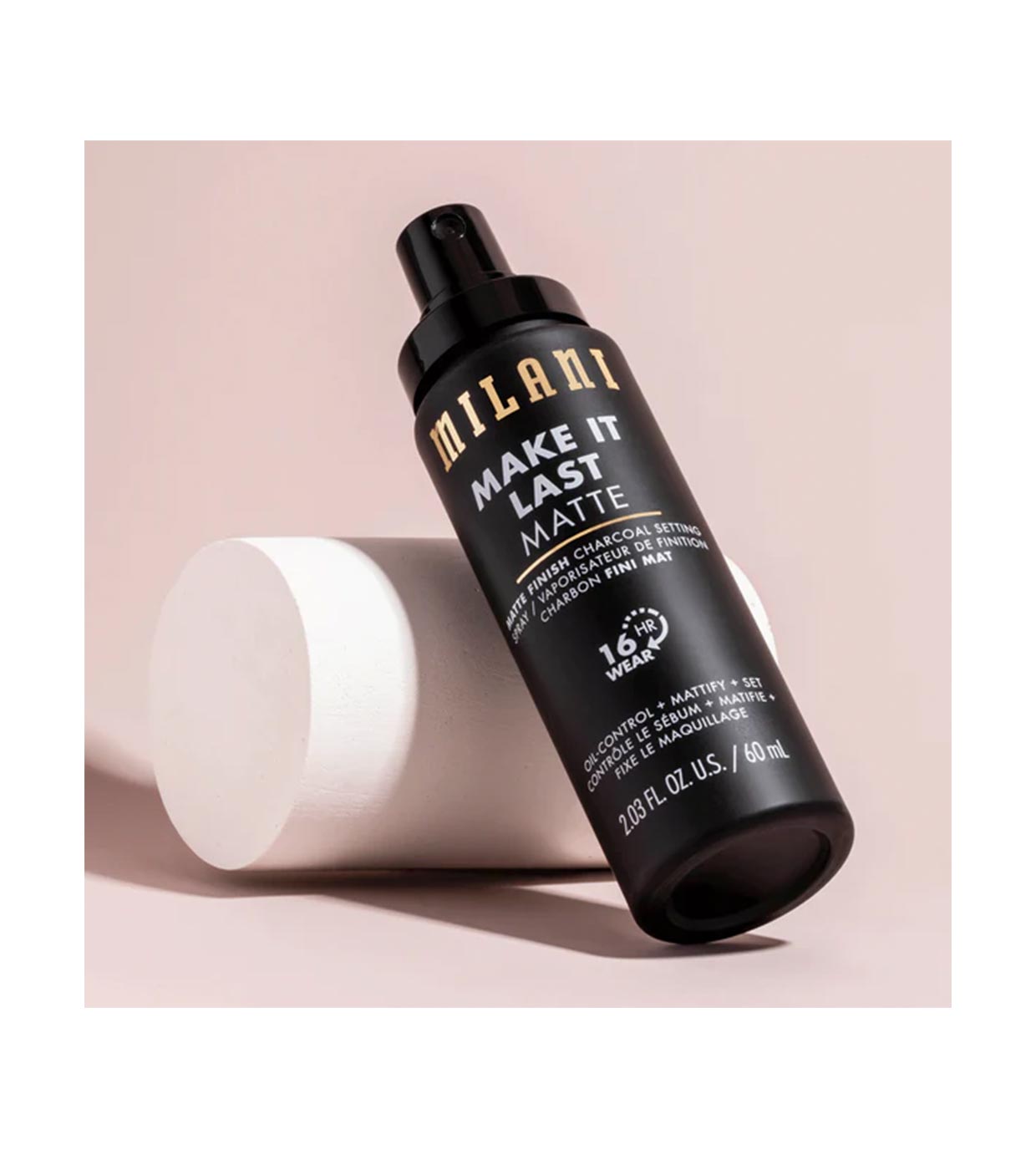 El spray fijador mate de carbón Make it Last de Milani es un auténtico candado para el look, y tiene ingredientes potentes para potenciar tu rutina de cuidado de la piel.