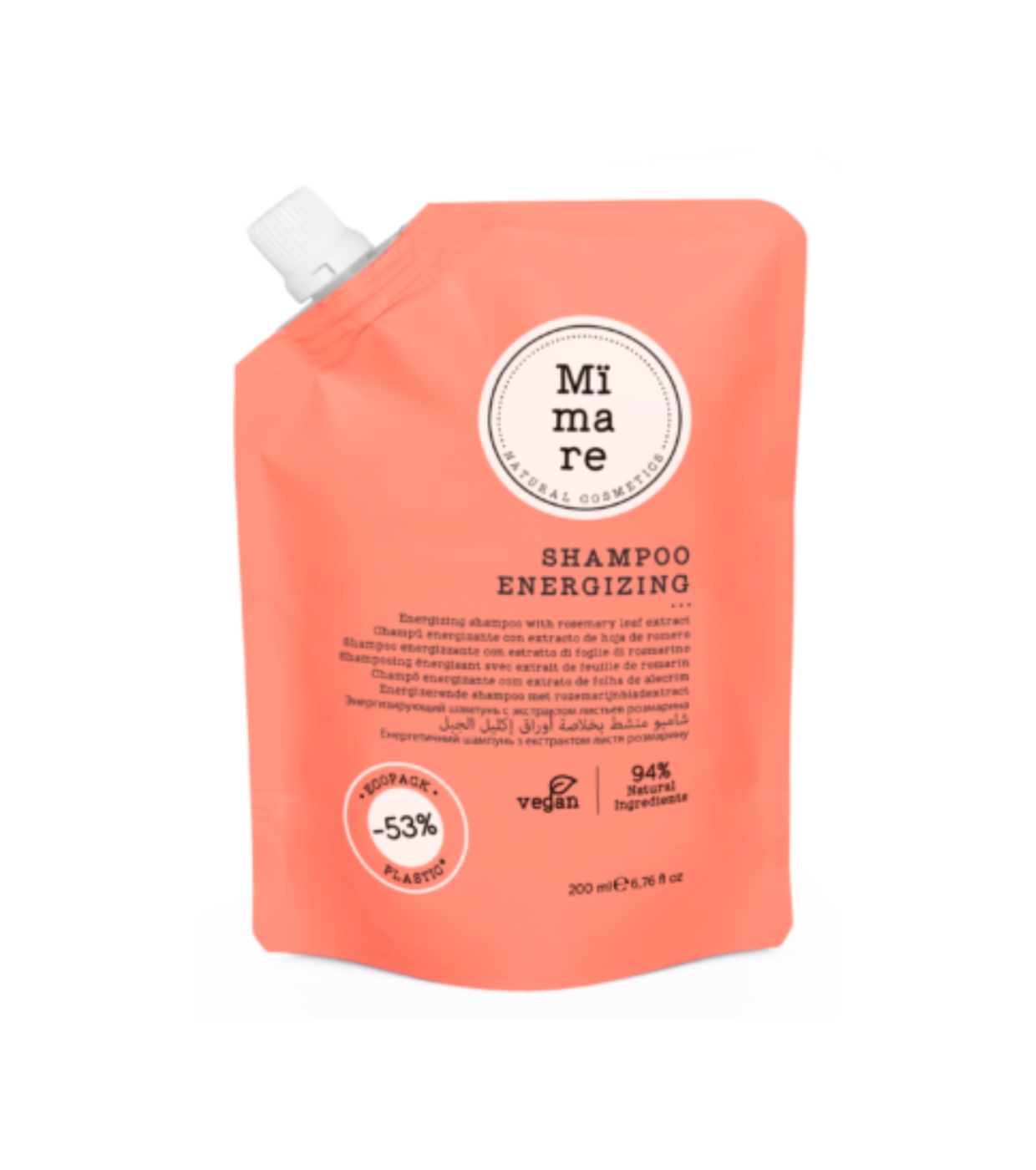 Devuélvele la energía a tu melena con este champú energizante con extracto de hoja de romero de Mimare, formulado especialmente para cabellos débiles, finos o sin volumen.