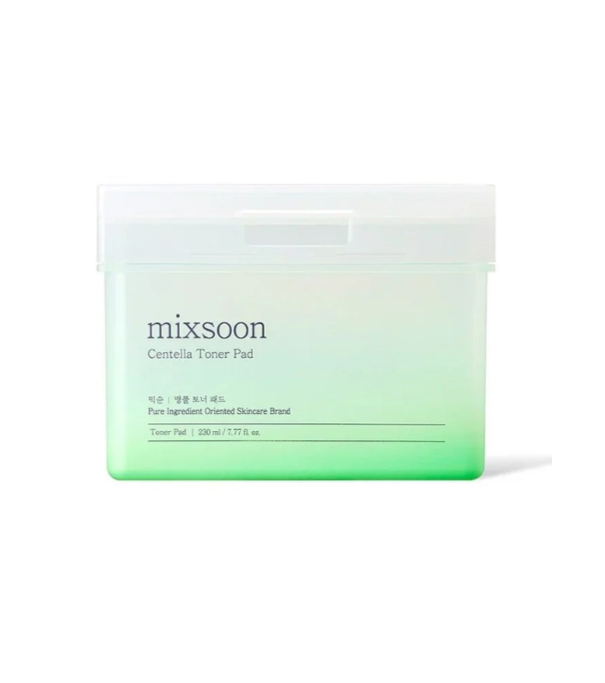 mixsoon Centella Toner Pad refresca y revitaliza la piel estresada con sus almohadillas tónicas con infusión de Centella Asiática, además de alantoína, betaína y ceramida NP para fortalecer la barrera cutánea.