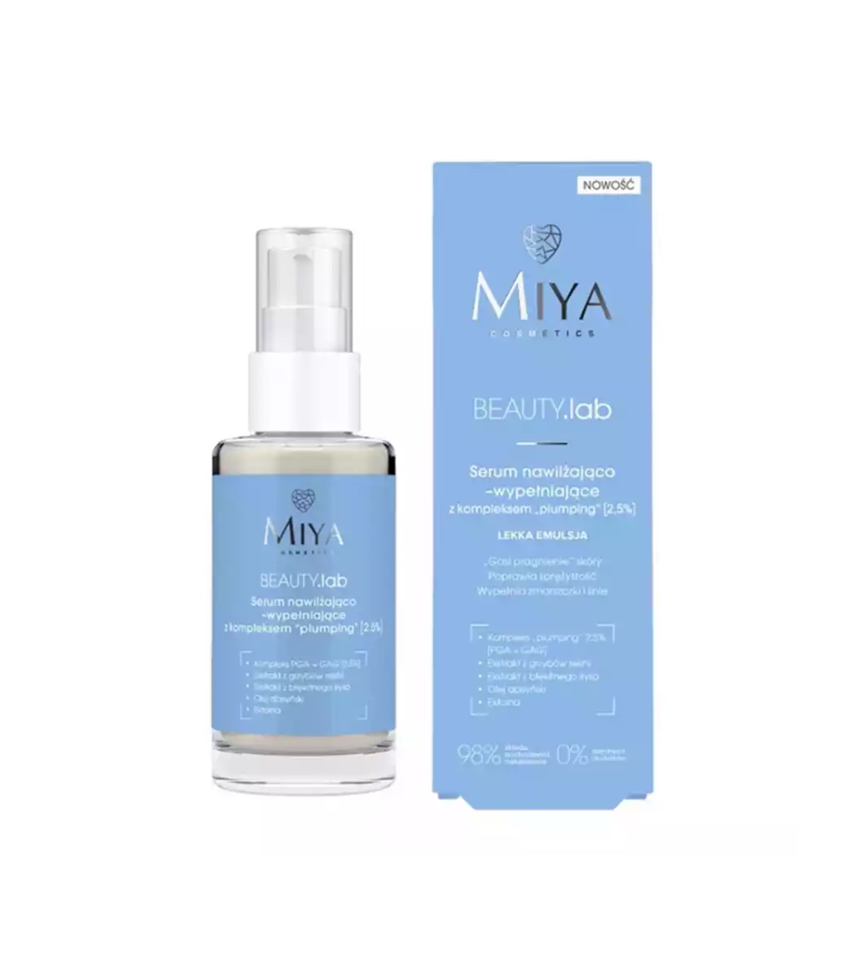 El sérum hidratante rellenador BEAUTY.lab de Miya es un tratamiento avanzado diseñado para hidratar intensamente, mejorar la firmeza y suavizar arrugas y líneas de expresión.