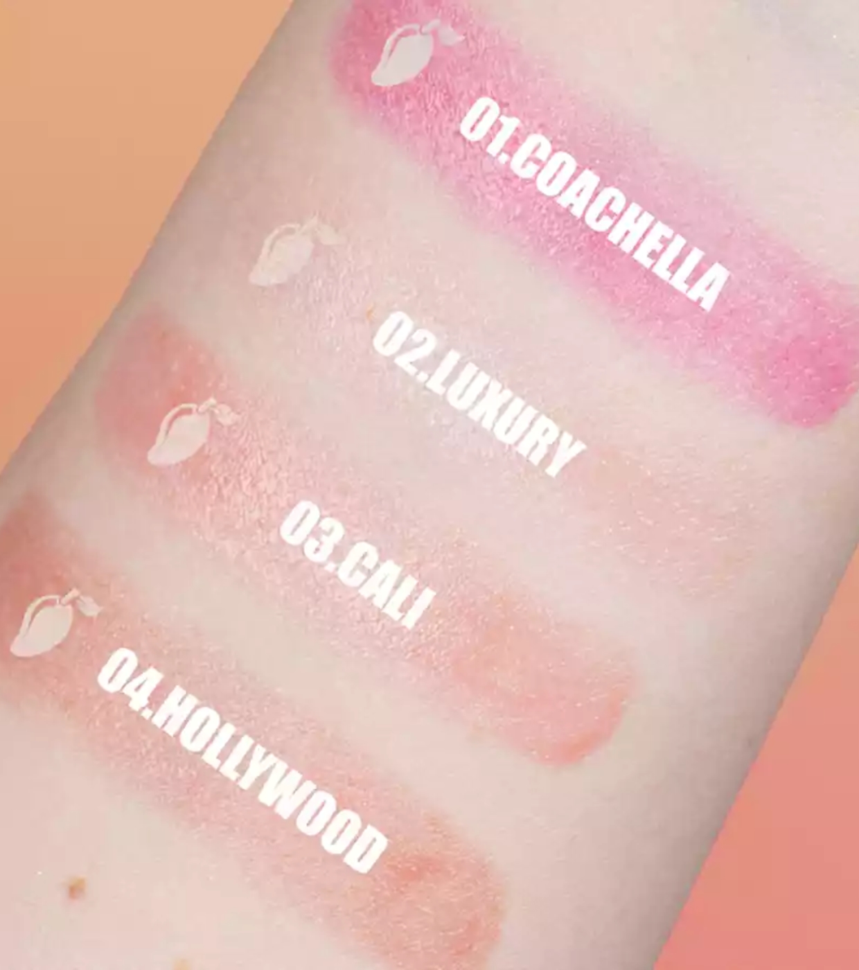 Disponible en 4 tonos versátiles inspirados en Palm Springs: Coachella, Luxury, Cali y Hollywood, perfectos para realzar el color natural de los labios y adaptarse a cualquier look.