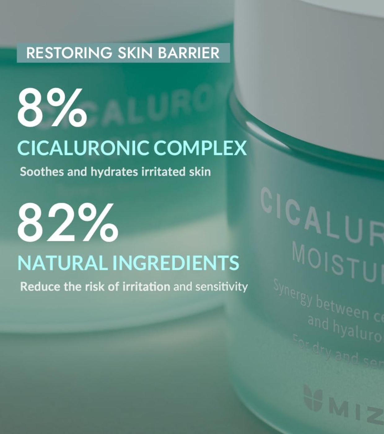 Contiene 80.000 ppm del exclusivo complejo Cicaluronic de Mizon, una combinación de centella asiática y ácido hialurónico que calma, hidrata y fortalece la barrera cutánea.
