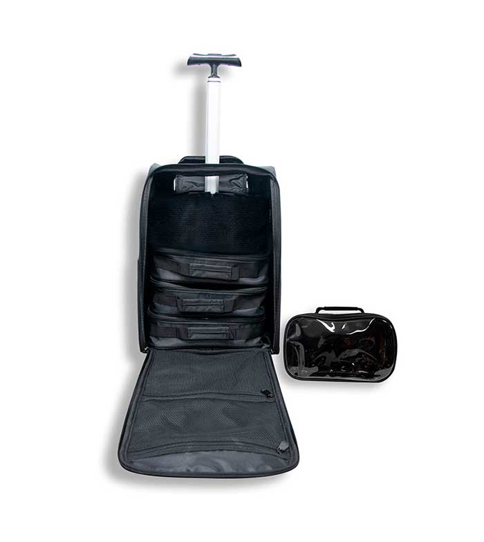 Además, incorpora dos ruedas en la parte inferior facilitando su desplazamiento, podrás usar la maleta para llevar tu maquillaje allá donde vayas.