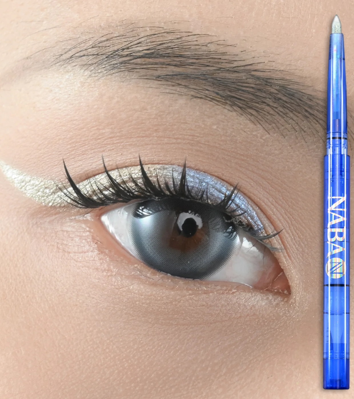 El delineador de ojos multicromo en gel Villain Era de Naba Cosmetics es un luminoso que se transforma entre tonos champán brillante, rosa dorado radiante y perla suave.