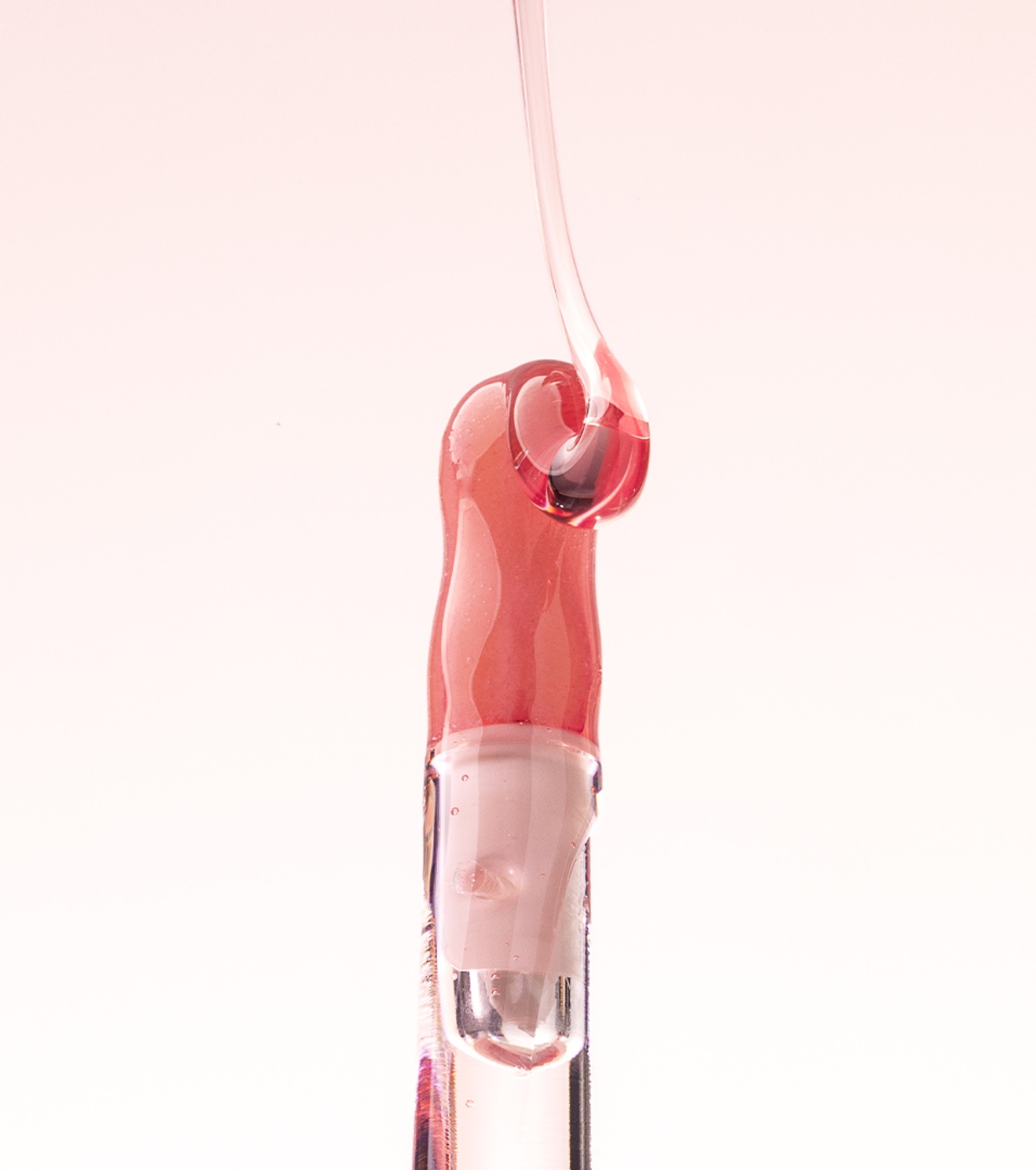 El aplicador en forma de reloj de arena masajea mientras libera el aceite labial.