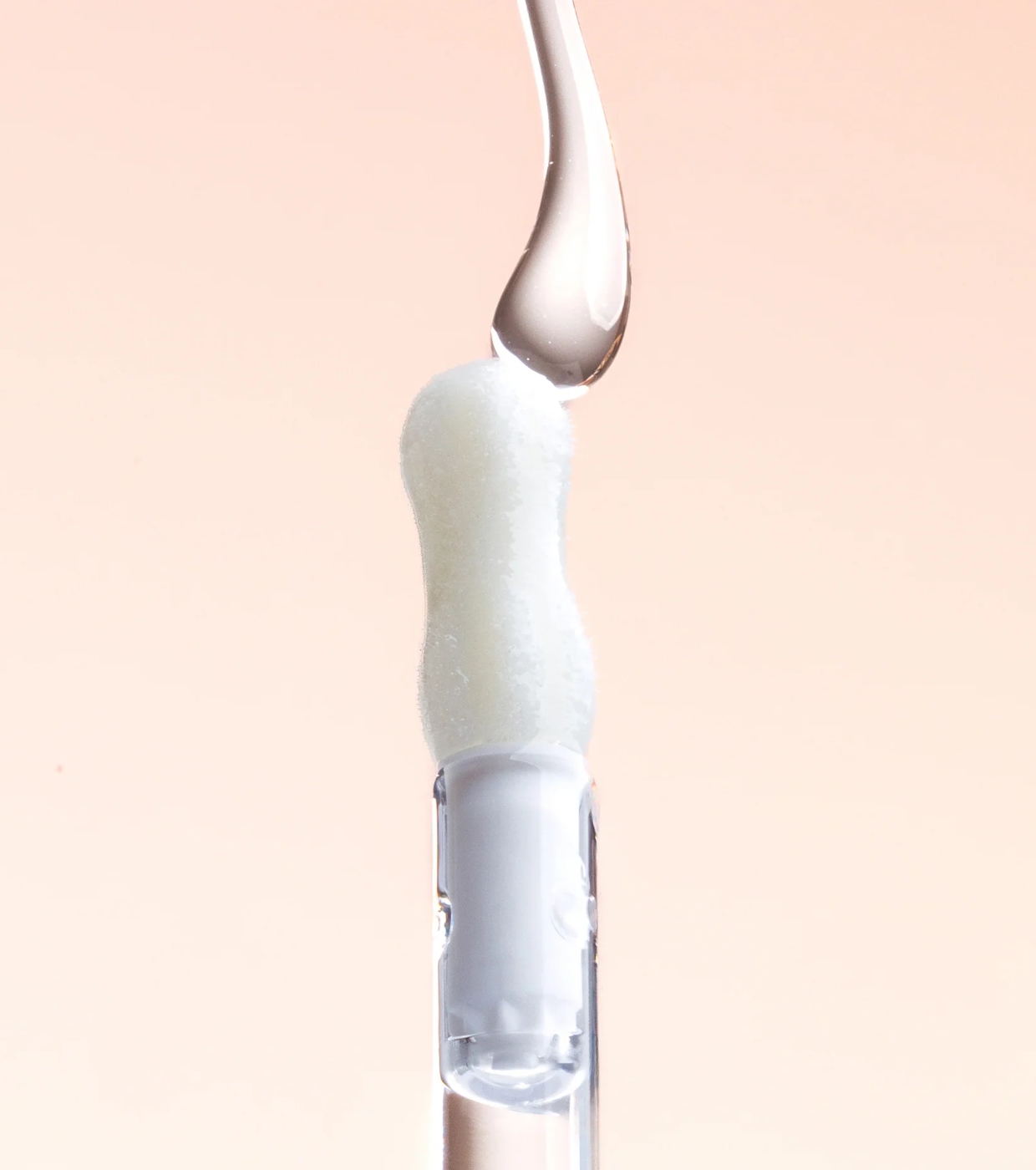 El aplicador en forma de reloj de arena masajea mientras libera el aceite labial.