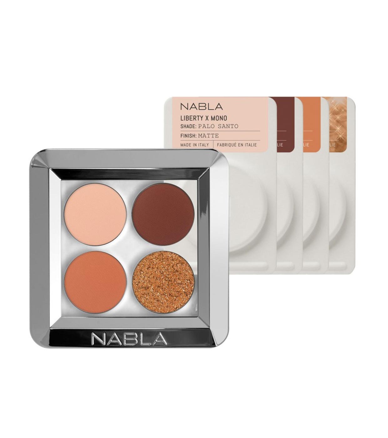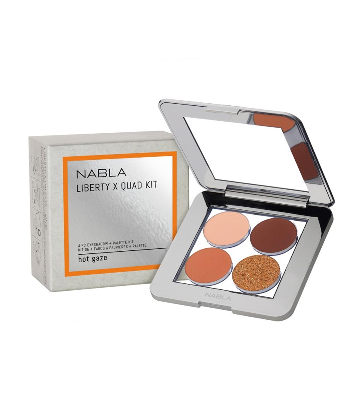 Paleta de sombras Hot Gaze, de la colección Liberty X de Nabla, una paleta con 4 sombras de ojos perfectamente combinadas entre sí para conseguir un look perfecto.