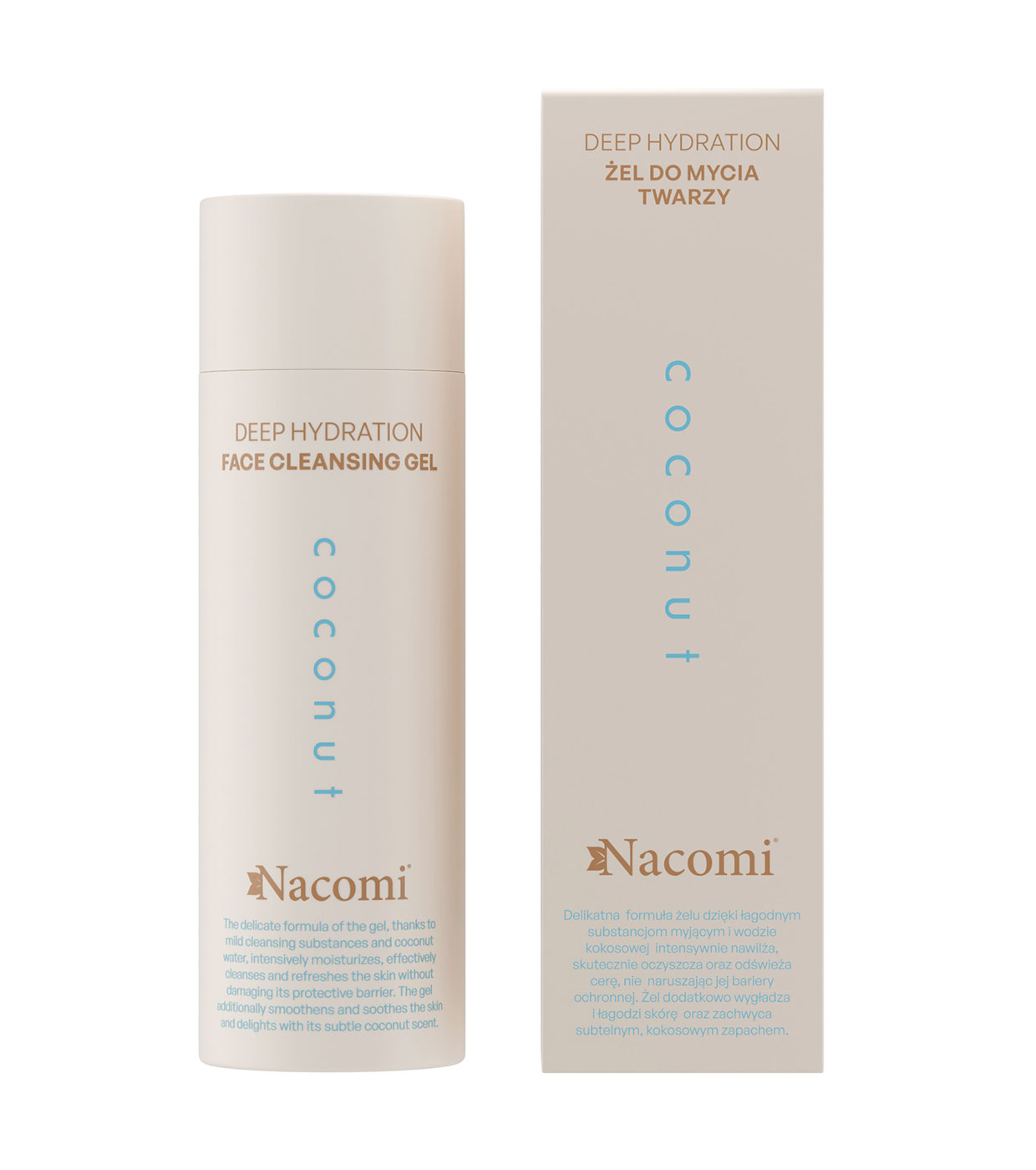 Sumérgete en una experiencia refrescante y revitalizante con el Gel Limpiador Facial de Hidratación Profunda de Nacomi, enriquecido con coco.