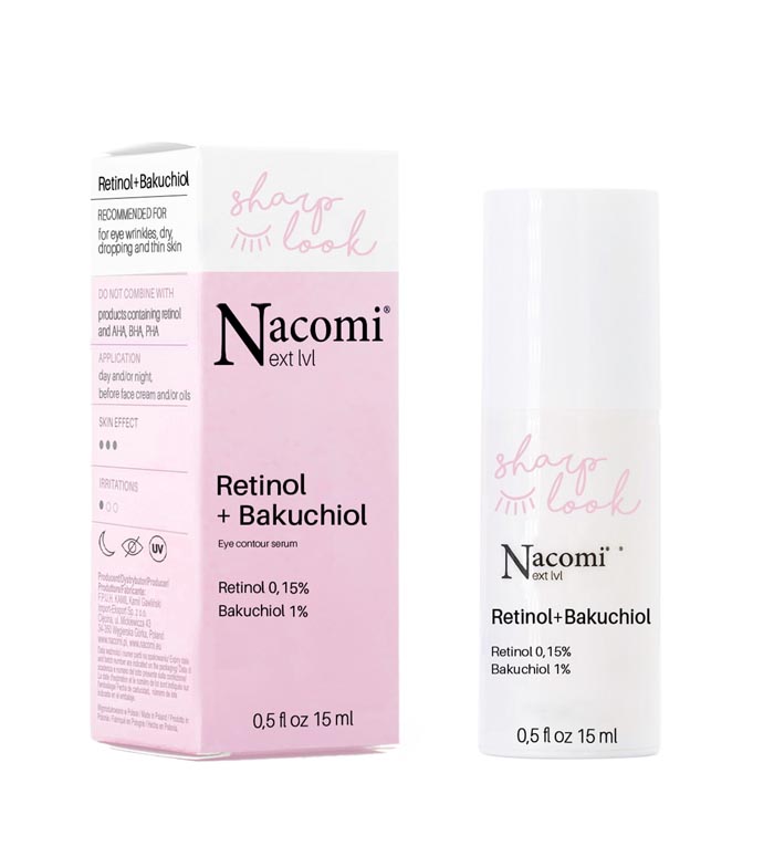 La combinación de retinol, bakuchiol y vitamina E reduce las arrugas, disminuye la visibilidad de las líneas de expresión y contribuye a tensar la piel.