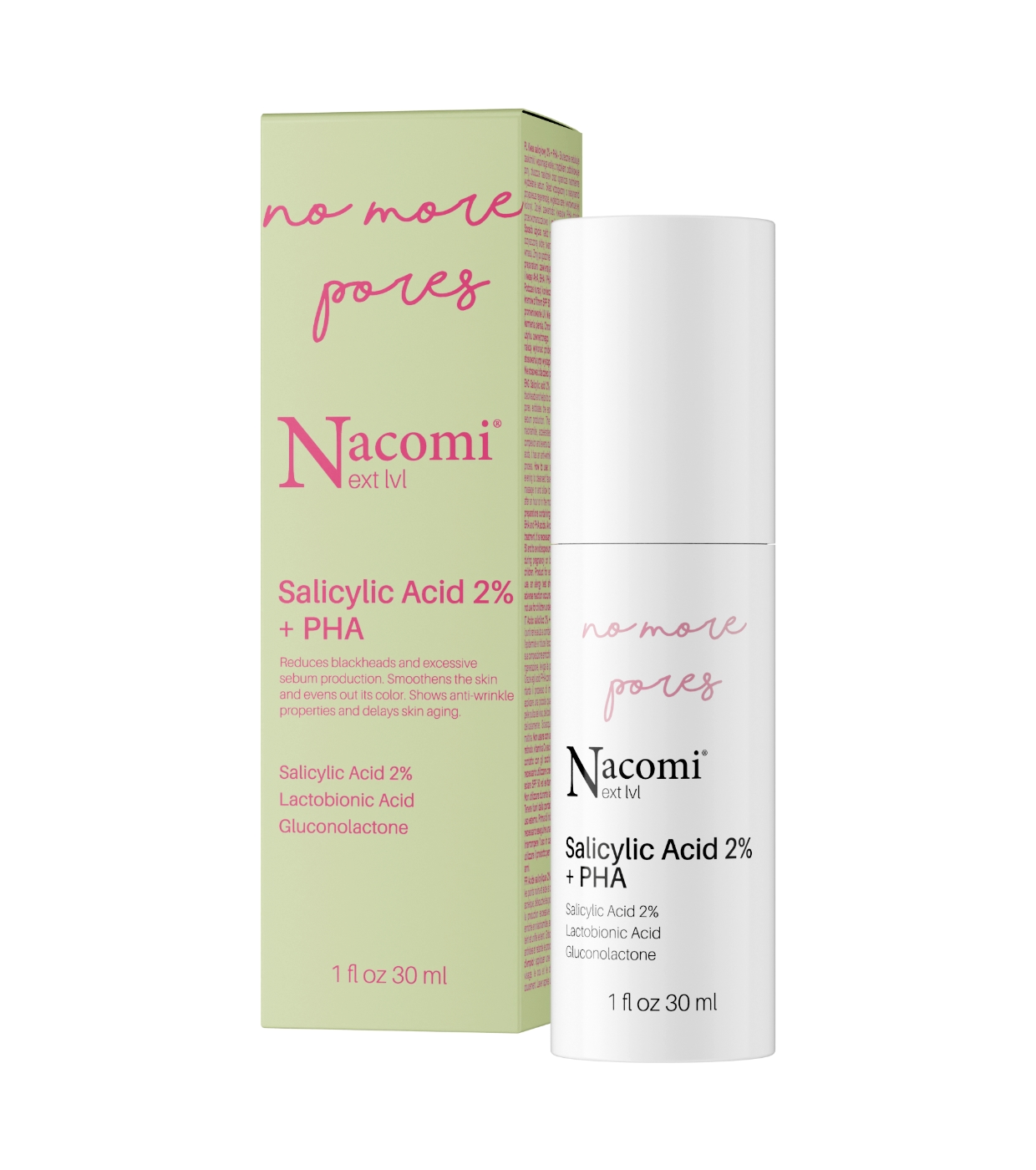Este Sérum con ácido salicílico 2% + PHA No More Pores de Nacomi combate eficazmente los puntos negros y el acné, limpiando los poros, exfoliando suavemente la epidermis y regulando la producción de sebo.