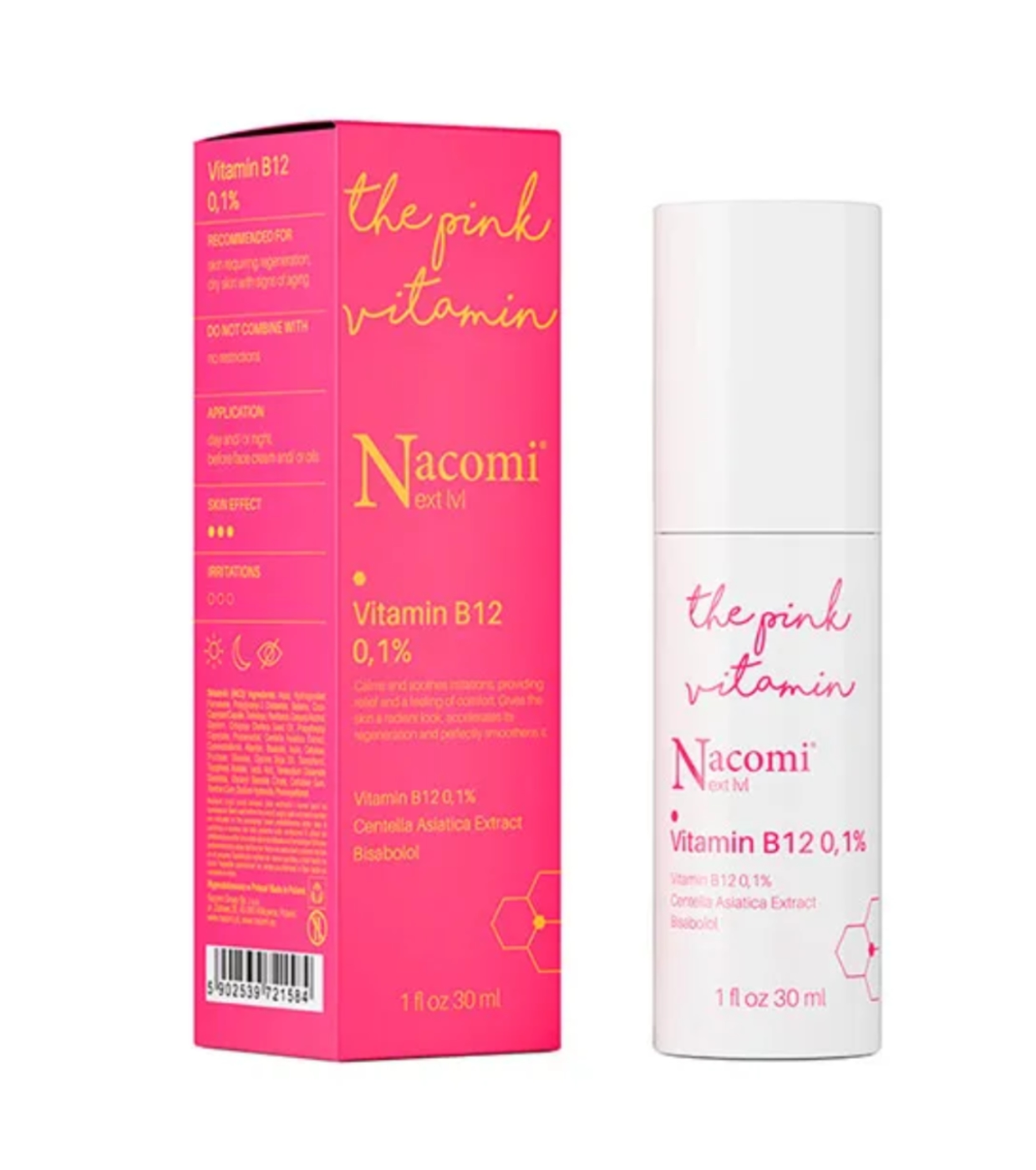 Descubre este sérum con vitamina B12 al 0,1% The Pink Vitamin de Nacomi mejora el estado de la piel sensible, le da un aspecto radiante y acelera la regeneración, manteniendo el nivel adecuado de hidratación.