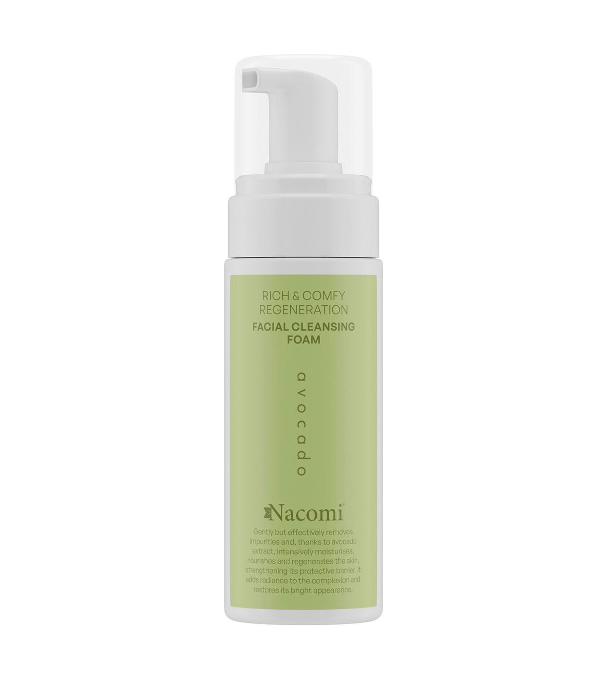 Sumérgete en una experiencia de limpieza rejuvenecedora con la Espuma Limpiadora Facial Rich&comfy Regeneration Avocado de Nacomi.
