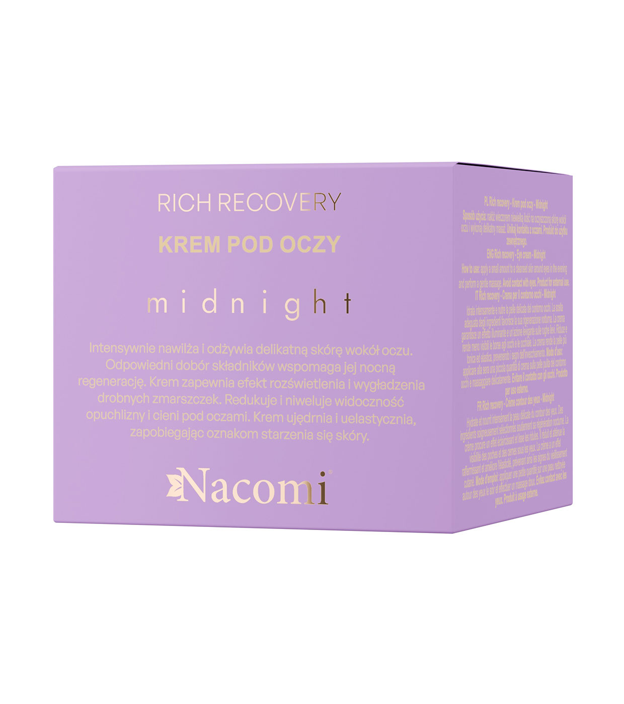 Descubre el cuidado nocturno definitivo para el contorno de tus ojos con la Crema para Ojos Rich Recovery MIDNIGHT de Nacomi.