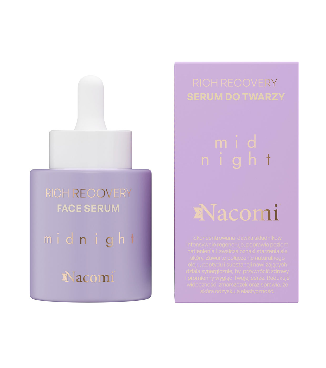 Experimenta una transformación nocturna para tu piel con el Sérum Facial Rich Recovery MIDNIGHT de Nacomi.