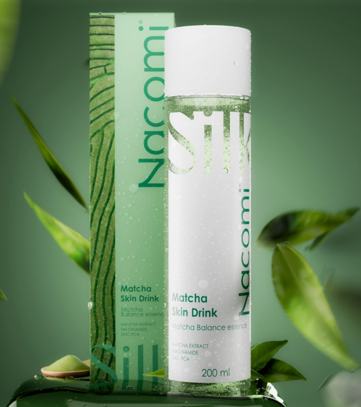 La esencia facial Matcha Skin Drink de Nacomi combina activos equilibrantes y suavizantes que ayudan a devolver al rostro una apariencia fresca y uniforme.