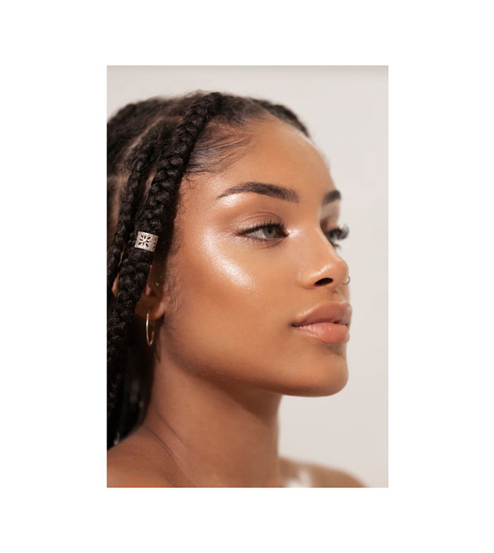 Iluminador líquido y sedoso que se funde con la piel dejando un acabado natural, jugoso, radiante, luminoso, fino y elegante.