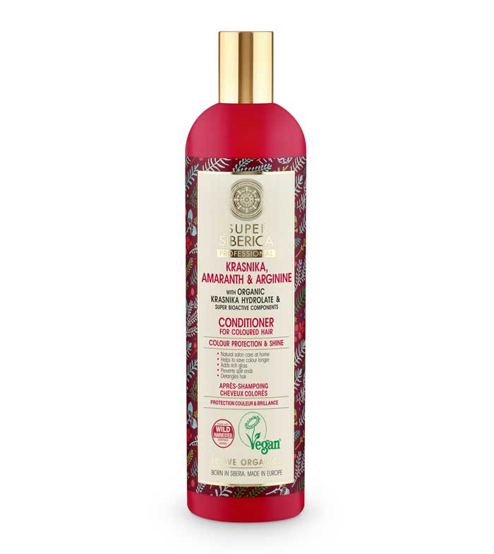 Este acondicionador para cabello teñido basado en hidrolato de arándano de Kamchatka orgánico, repara la estructura del cabello teñido, le aporta brillo, protege el color y facilita el peinado.