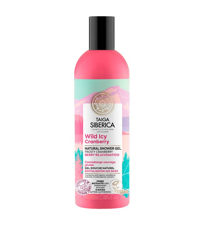 El gel de ducha con arándano rojo silvestre helado es una combinación de extractos de bayas heladas y vitamina A, E, C y P, que tonifican la piel y la dejan suave y aterciopelada.