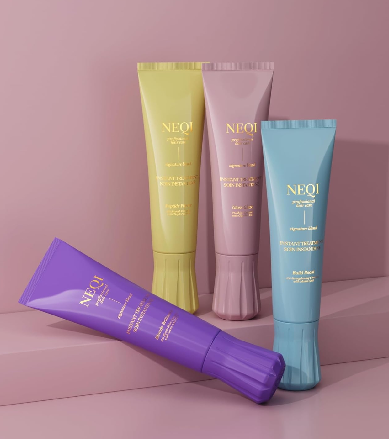 Treatment Treasure Blonde de NEQI es un tratamiento intensivo de tan solo 3 minutos que reaviva la luminosidad del cabello rubio, aclara reflejos apagados y elimina el indeseado tono amarillento.