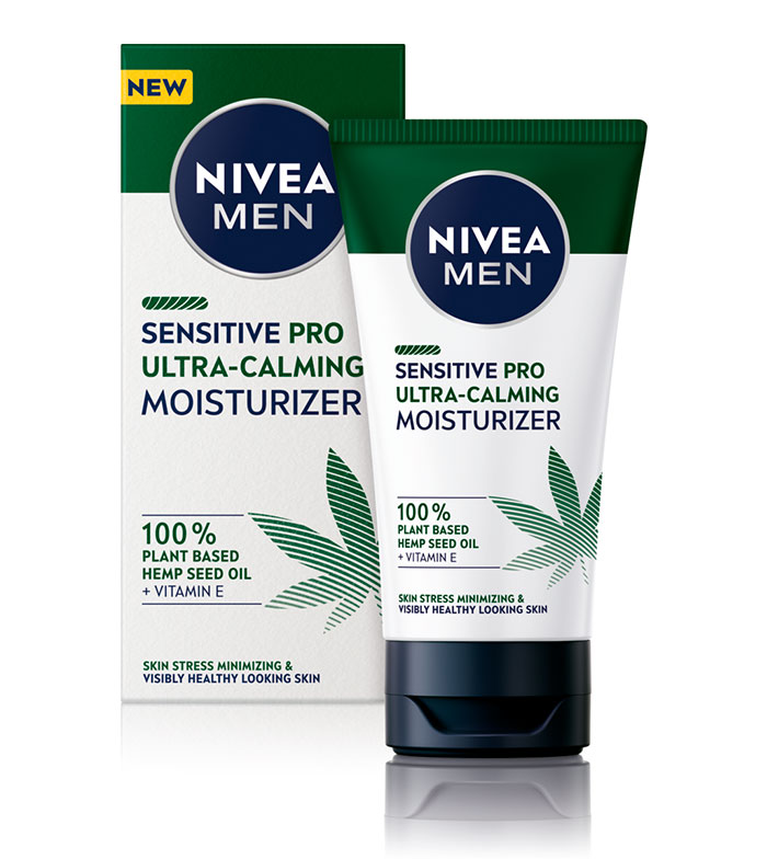 La crema facial hidratante Sensitive Pro Ultra-Calming de Nivea Men minimiza instantáneamente los signos de estrés en la piel, como la sequedad, las irritaciones así como las líneas de expresión.