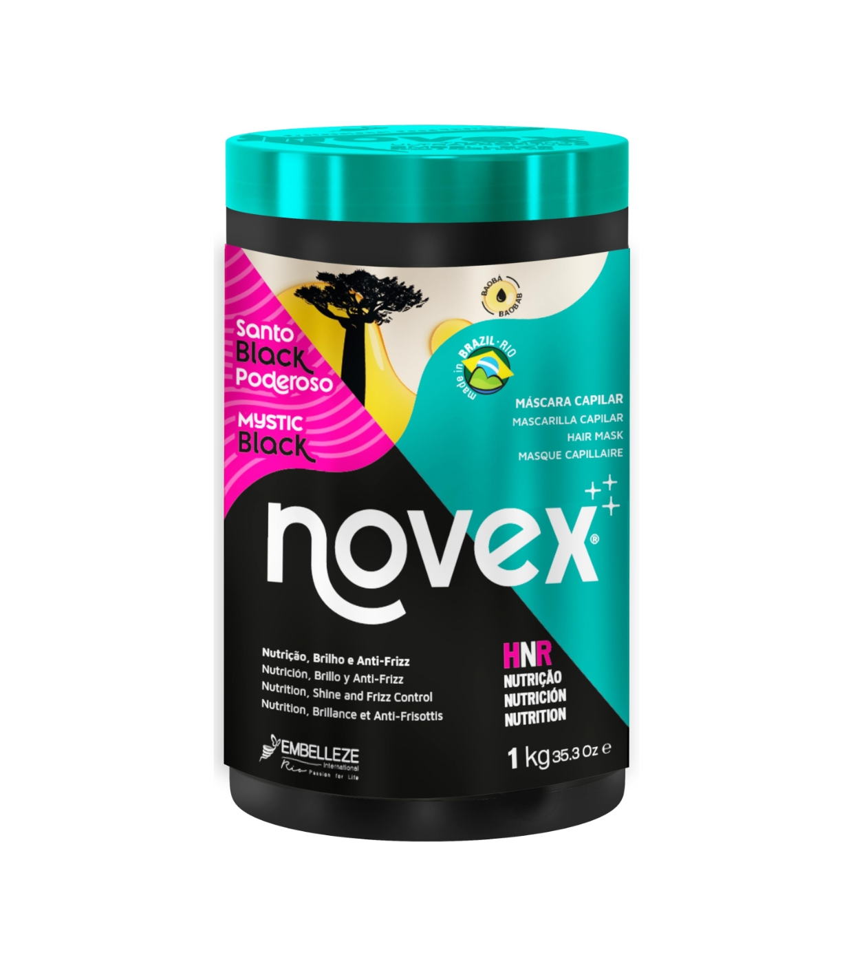 La mascarilla Mystic Black de Novex proporciona la hidratación más potente y el brillo mágico para el cabello dañado y enredado.