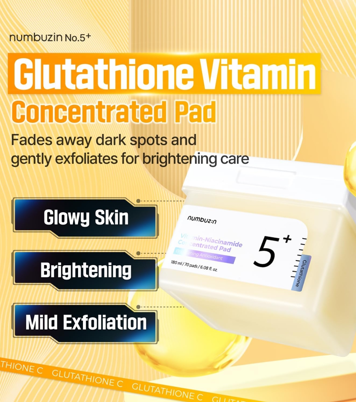 Las almohadillas concentradas No.5+ Vitamin-Niacinamide de Numbuzin están formuladas con una poderosa mezcla de Vitamina C, Niacinamida y Vitamina E, diseñadas para iluminar la piel, reducir manchas oscuras y mejorar la textura cutánea.