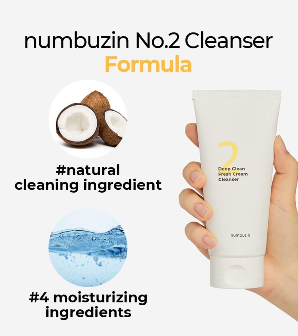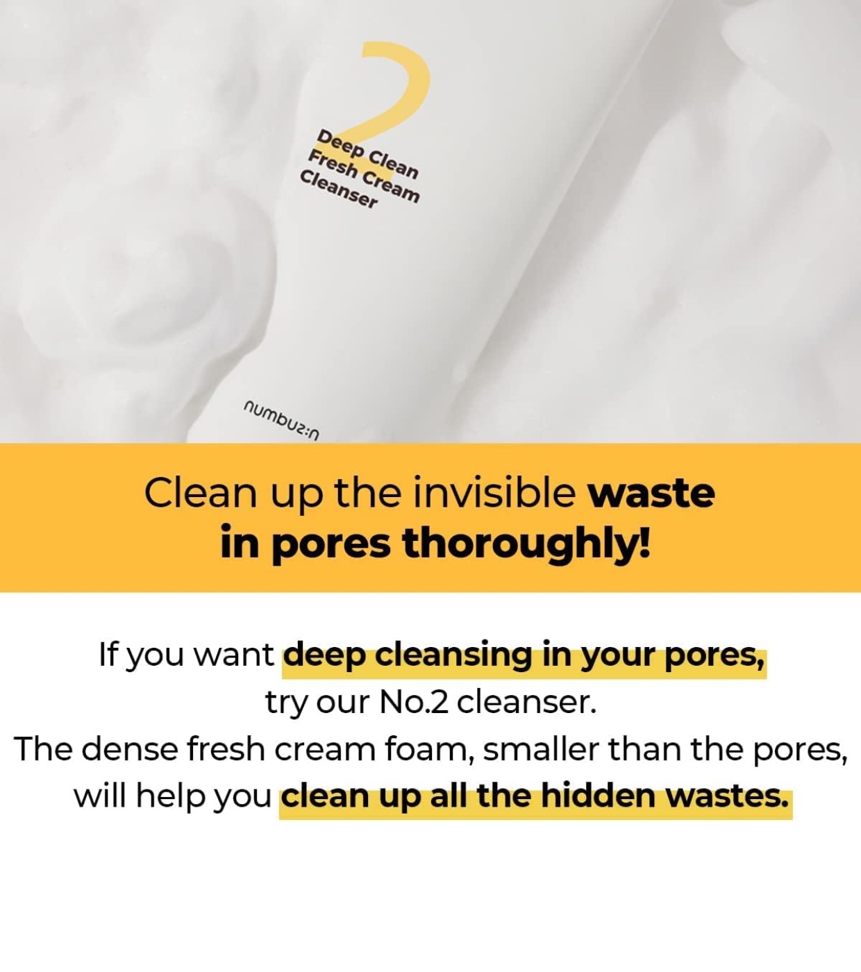 La espuma limpiadora No.2 Deep Clean Fresh de Numbuzin se convierte en una rica espuma densa para eliminar las impurezas, el exceso de sebo y los residuos de maquillaje.