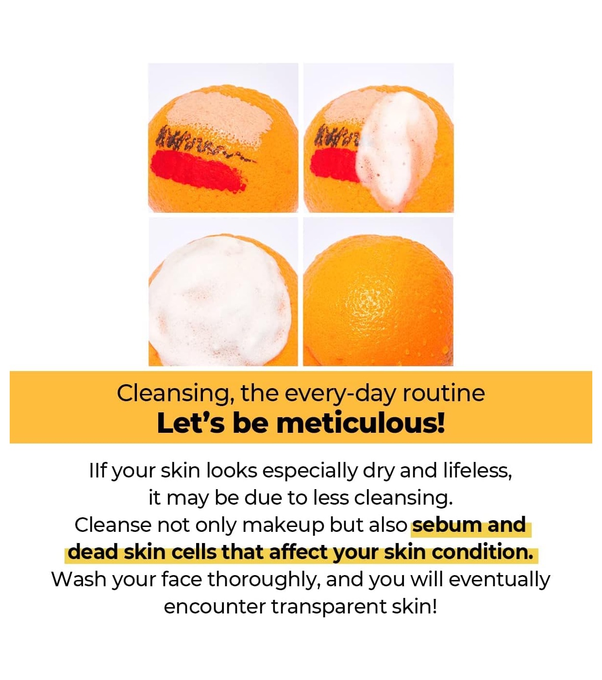 - Una espuma limpiadora con abundante espuma diseñada para extraer y eliminar los desechos de los poros, como el sebo y los residuos de maquillaje.