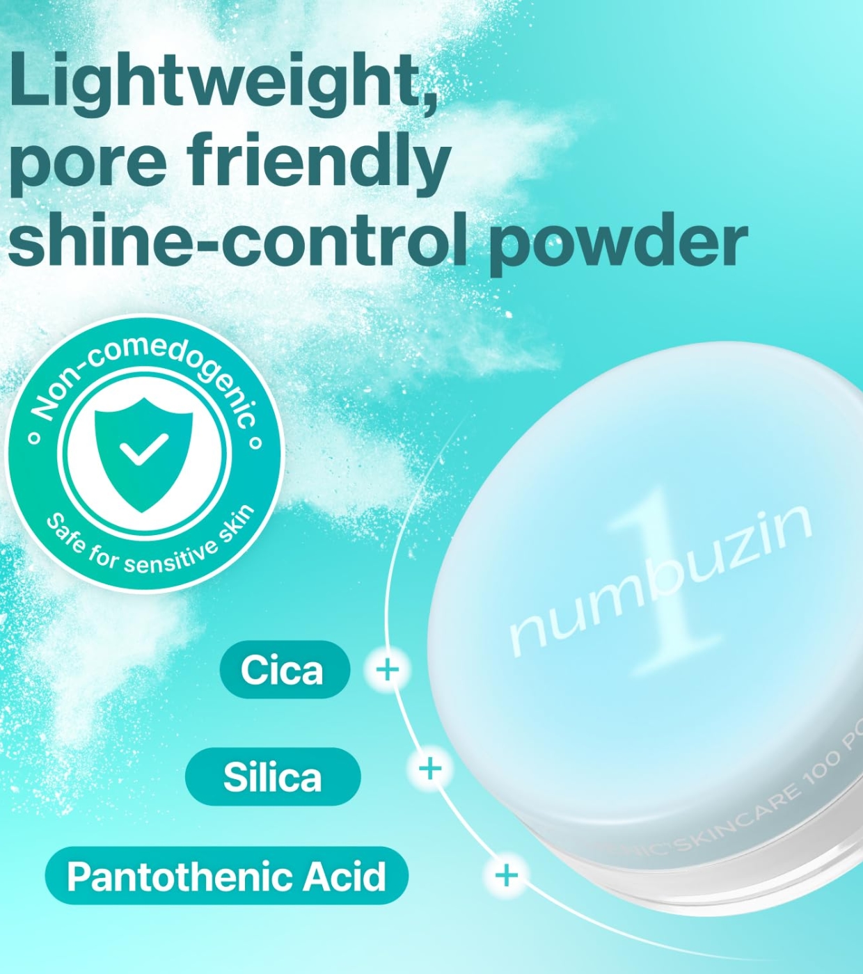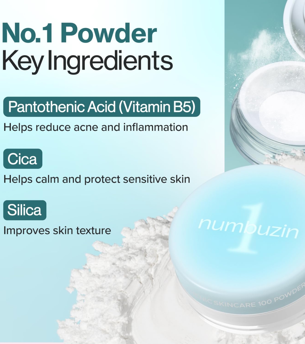 Consigue una piel suave, sin brillos y cuidada con los polvos matificantes No.1 Pantothenic Skincare 100 de Numbuzin, los polvos matificantes que no solo perfeccionan el acabado del maquillaje, sino que también tratan la piel.