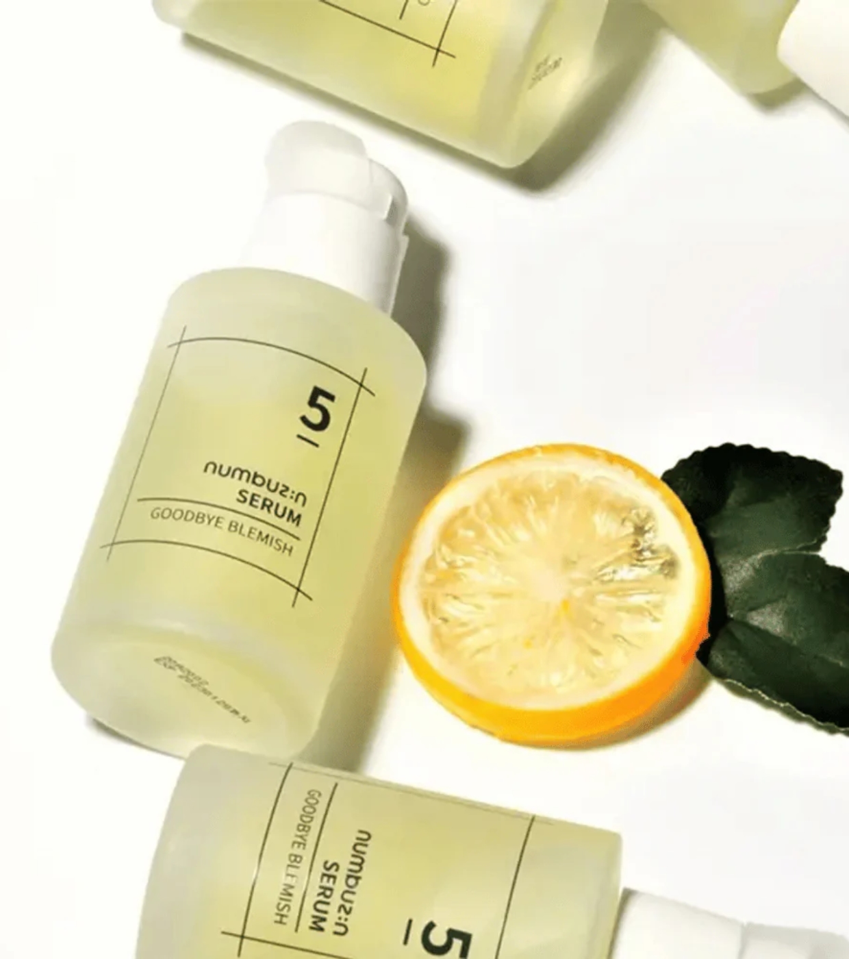 Dale un boost de luminosidad a tu piel con este sérum iluminador No.5 Goodbye Blemish de Numbuzin para imperfecciones formulado con un potente 75% de extracto vitamínico, ácido ascórbico (vitamina C) y pantenol.