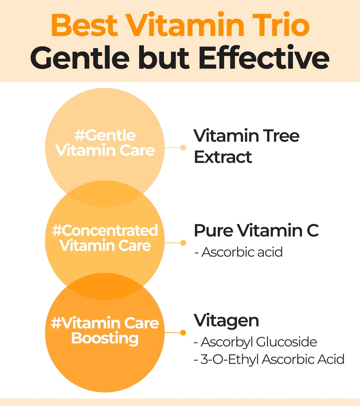 Hippophae Rhamnoides Extract, Butylene Glycol, Methyl Gluceth-20, Dipropylene Glycol, Glycerin, 1,2-Hexanediol, Niacinamide, Melia Azadirachta Flower Extract, Ocimum Sanctum Leaf Extract, Melia Azadirachta Leaf Extract, Curcuma Longa (Turmeric) Root Extract, Corallina Officinalis Extract, Citrus Limon (Lemon) Peel Oil, Citrus Aurantium Dulcis (Orange) Peel Oil, Citrus Aurantifolia (Lime) Oil, Polygonum Cuspidatum Root Extract, Scutellaria Baicalensis Root Extract, Camellia Sinensis Leaf Extract, Glycyrrhiza Glabra (Licorice) Root Extract, Chamomilla Recutita (Matricaria) Flower Extract, Rosmarinus Officinalis (Rosemary) Leaf Extract, Centella Asiatica Extract, Ascorbyl Glucoside, Ascorbic Acid, 3-O-Ethyl Ascorbic Acid, Panthenol, Sodium Hyaluronate, Dipotassium Glycyrrhizate, Glycereth-26, Ammonium Acryloyldimethyltaurate/VP Copolymer, Polyglyceryl-10 Laurate, Carbomer, Allantoin, Tromethamine, Purified Water, Hydrolyzed Jojoba Esters, Disodium EDTA, Citral, Limonene