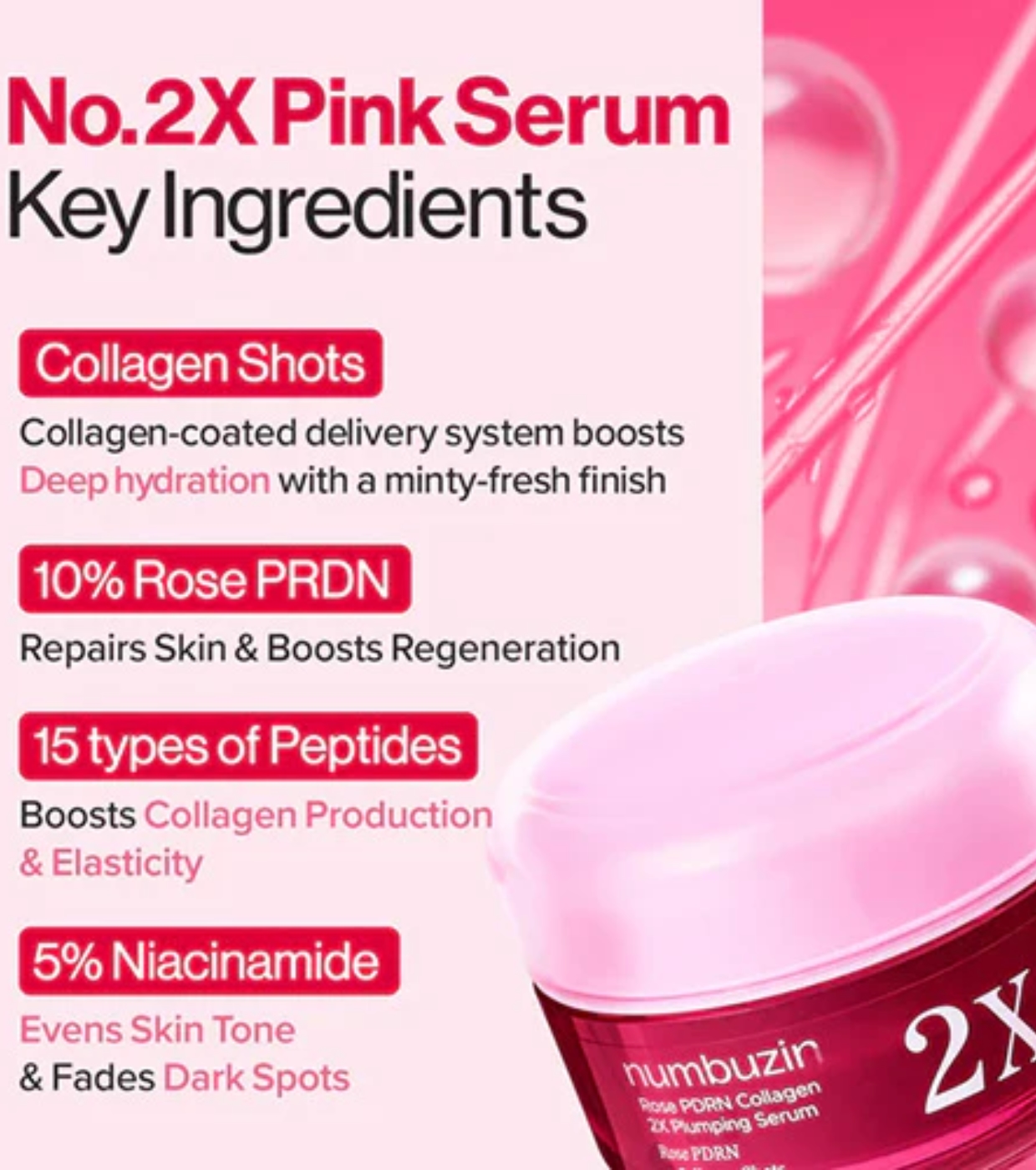 ¿Buscas una piel más firme, elástica y luminosa? Este sérum No.2 Rose PDRN Collagen 2X de Numbuzin con textura gelatina jugosa está formulado para aportar una hidratación intensa y un efecto revitalizante inmediato.