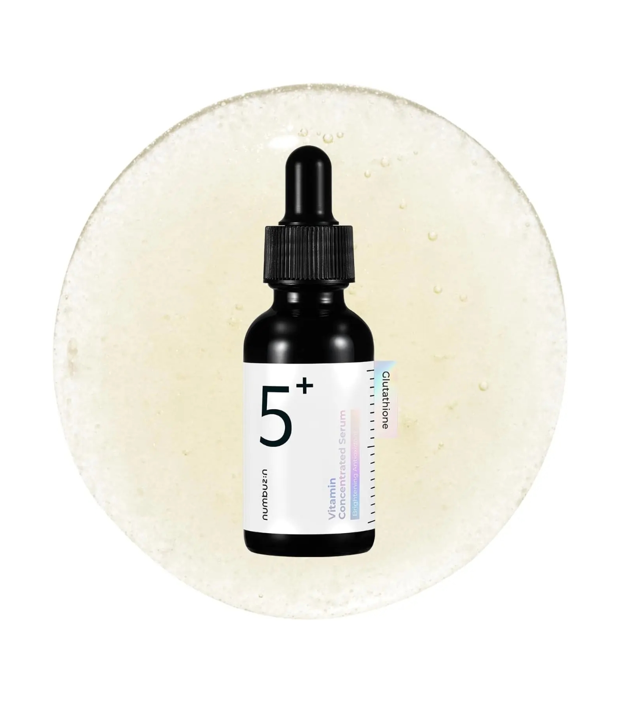 Si buscas desvanecer manchas oscuras, cicatrices e imperfecciones, el sérum revitalizante No.5+ Vitamin Concentrated de Numbuzin es tu aliado definitivo.