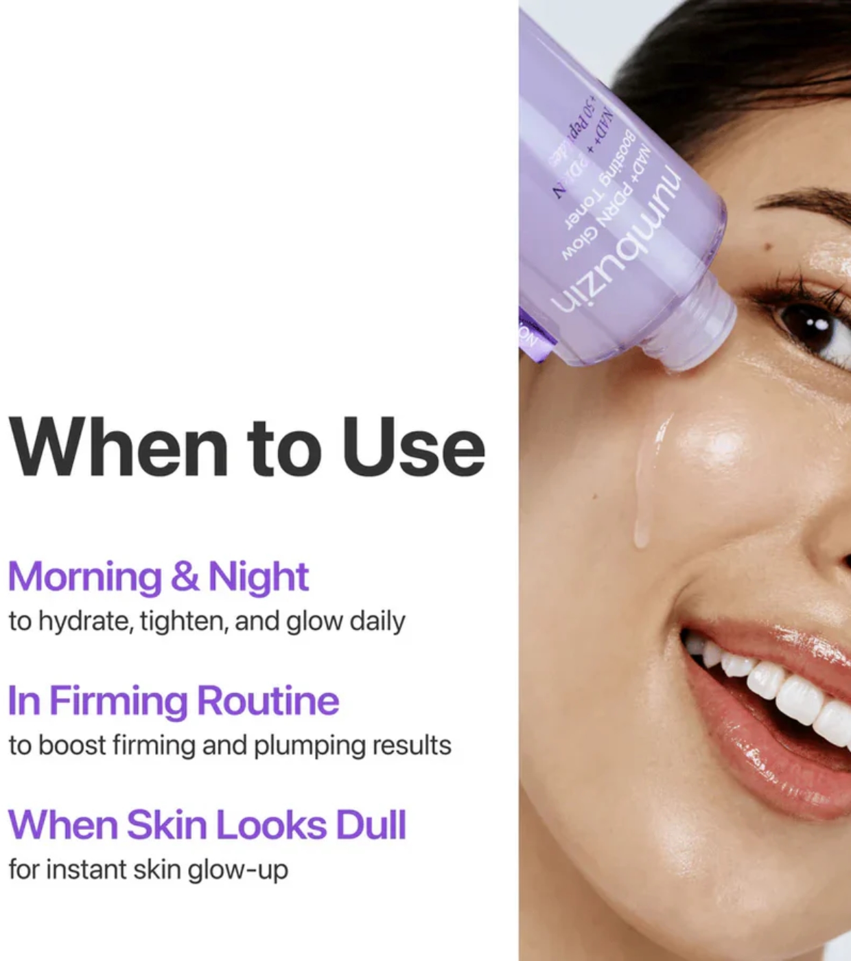 Este tónico iluminador de Numbuzin está formulado con NAD+, PDRN de salmón y 50 tipos de péptidos para mejorar la elasticidad, reforzar la barrera cutánea y revitalizar la piel, revelando una luminosidad radiante desde el interior.