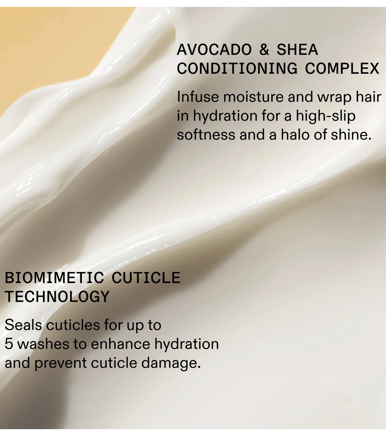 Formulada con tecnología biomimética de la cutícula, actúa reteniendo la humedad, reforzando la fibra capilar y sellando las cutículas hasta cinco lavados, evitando así la pérdida de hidratación.