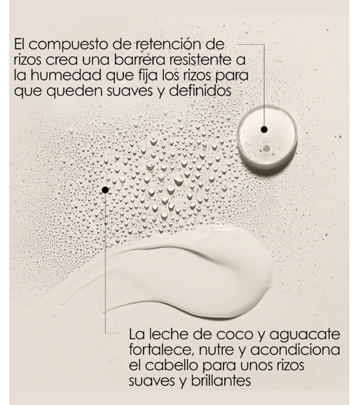 - Reparación, redefinición y fijación: Restaura y fija la forma natural de las ondas, rizos y bucles, mejorando la textura y la apariencia del cabello.