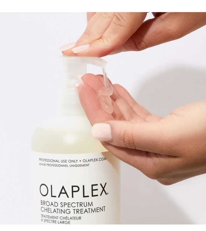 El tratamiento Broad Spectrum Chelating de Olaplex es un tratamiento de alta potencia que elimina las impurezas dañinas, el cloro, contaminación, minerales y acumulación de productos del cabello, sin perjudicar su humedad natural y proteínas.