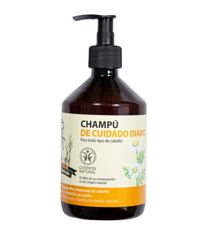 Este champú para uso diario, a base de aceite orgánico de romero y de extracto orgánico de manzanilla limpia suavemente el cabello, realzando su brillo natural.