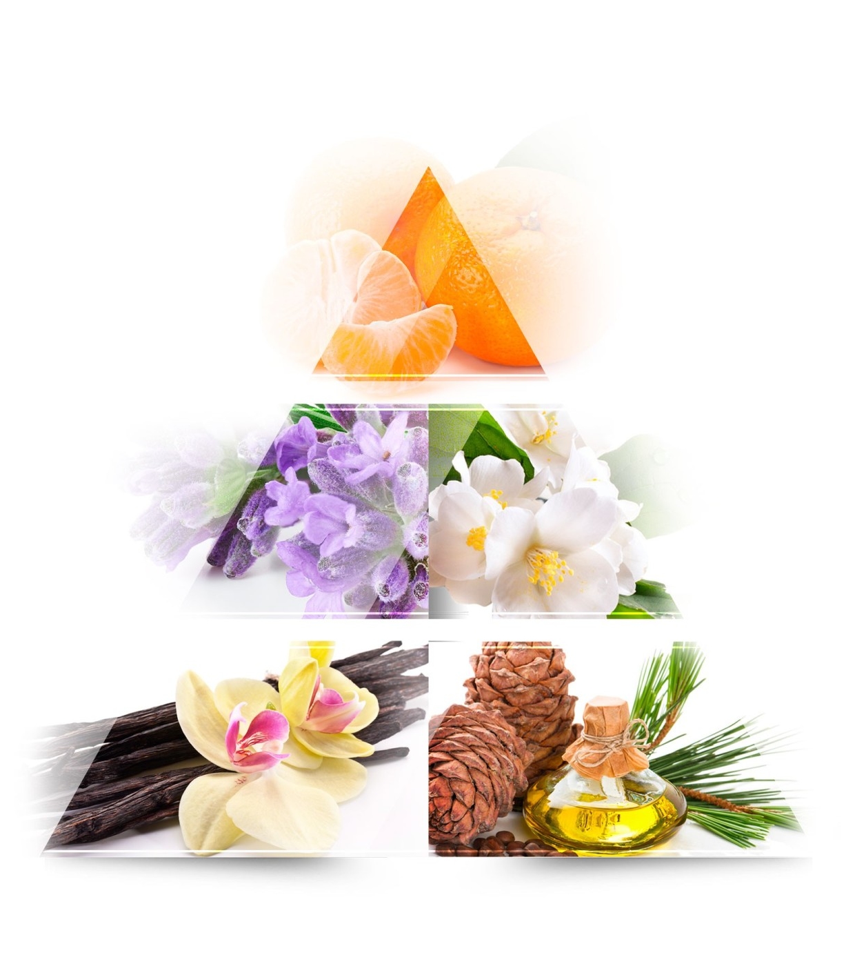 - Notas de corazón: flor de azahar, jazmín y lavanda.