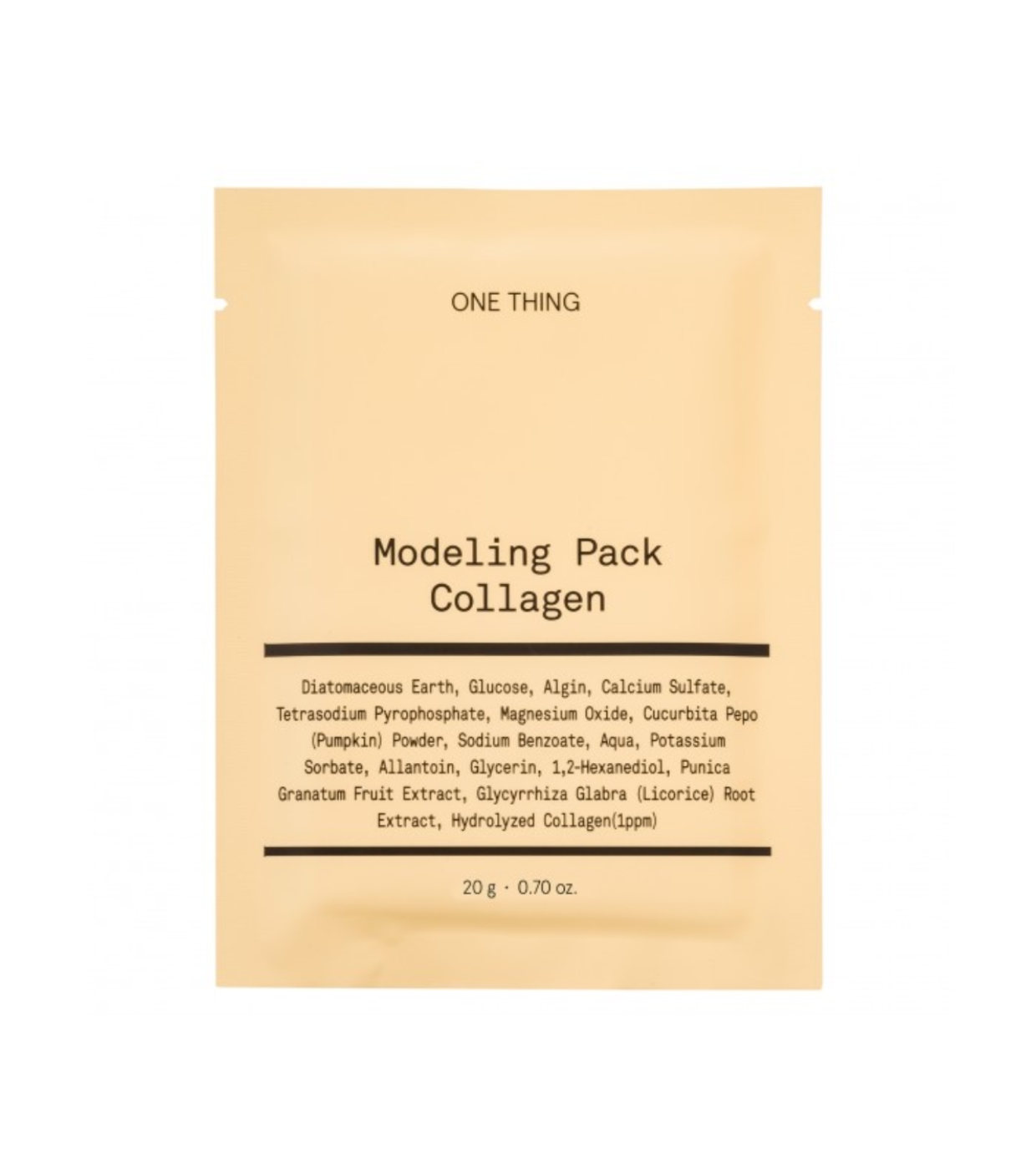 Renueva la firmeza y luminosidad de tu piel con la Collagen Modeling de ONE THING, una mascarilla facial en polvo tipo modeling mask (mascarilla de goma o peel-off) que se activa al mezclar con agua, formando una textura flexible que se adapta perfectamente al rostro.